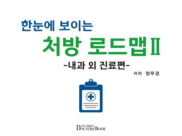 이러한 특성으로 많은 내용을 담거나 자세한 설명을 해드리지는 못하고, 최신지견을 전달하는데 있어서 미흡한 점이 있지만, 단순함과 가독성이 필요한 때에 이 책은 본연의 역할을 해낼 것으로 기대합니다. 그리고 웬만한 진료과는 모두 들어있을 정도로 책의 범위는 넓지만 방대해져서 부담감으로 작용하지 않도록 핵심 내용만 담도록 노력했고, 처방하실 때 바로 적용하실 수 있도록 처방약 위주로 기술했습니다. 처방 로드맵은 2권으로 이루어져 있습니다. 1권은 내과 영역으로 이루어져 있고, 2권은 내과 이외의 영역으로 이루어져 있습니다. 처방 로드맵은 여러 과에서 사용하는 약물과 그에 대한 설명이 한눈에 들어올 수 있도록 구성되어 있습니다.